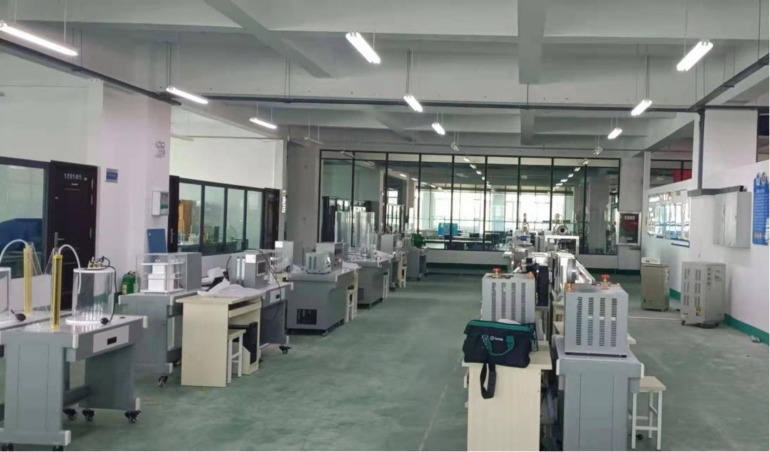 此項目施工內(nèi)容包括實訓(xùn)室裝飾裝修、水電改造、文化墻設(shè)計安裝、112臺實驗設(shè)備安裝調(diào)試、3D仿真教學(xué)軟件安裝調(diào)試等,我公司在具體實施過程中以高效、高品質(zhì)的姿態(tài)完成了流體力學(xué)、工程熱力學(xué)實訓(xùn)室的整體建設(shè)任務(wù)。不同類型的實驗設(shè)備需要不同的實驗室區(qū)域和布局,實驗材料的流動和儲存也需要合理布置,在施工時,公司將實訓(xùn)室設(shè)備布局與水電設(shè)計視為重點,從專業(yè)角度進行設(shè)計,結(jié)合不同實訓(xùn)室特色繪制實驗設(shè)備布置圖,為實訓(xùn)室建設(shè)奠定了堅實的基礎(chǔ)。在設(shè)備安裝時,面對設(shè)備種類繁多、接線調(diào)試復(fù)雜、時間緊迫等不利條件,公司更是積極統(tǒng)籌規(guī)劃,安排多名專業(yè)技術(shù)人員分工安裝調(diào)試,確保在時間節(jié)點內(nèi)完成實訓(xùn)室的建設(shè)。
